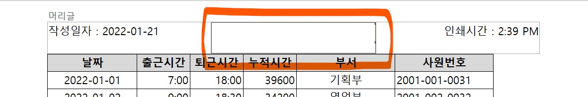 위에 적용된 날짜와 시간을 머리글에 적용하고 싶다면 아래 포스팅을 참고할 것.