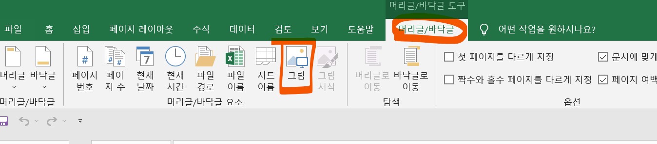3. [머리글/바닥글] 탭에서 [그림]을 선택해준다.