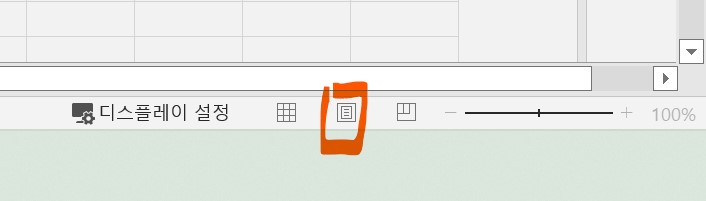 1. 엑셀 오른쪽 하단에 있는 [페이지 레이아웃] 아이콘을 클릭하여 머리글/바닥글이 적용되게 만든다.
