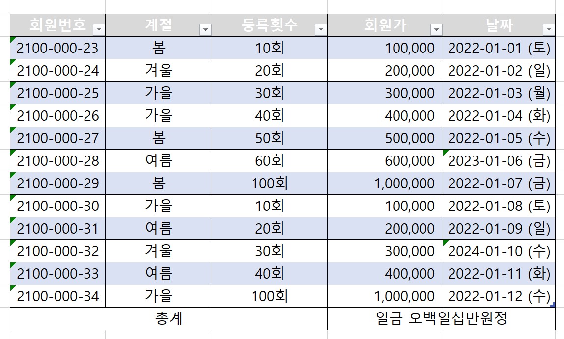 회원가 데이터 셀에 [색조] 서식을 적용하려고 한다.