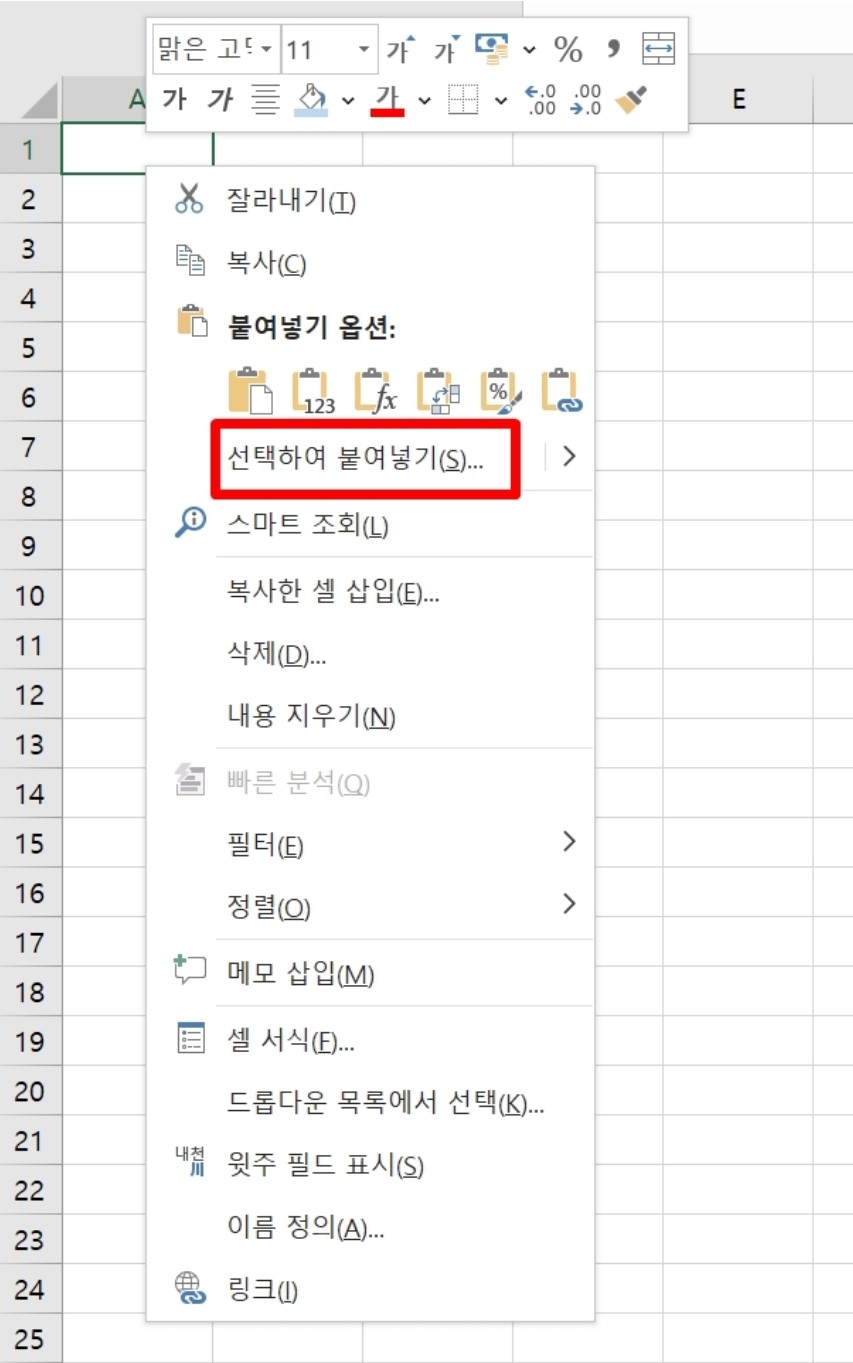 4. 마지막으로, 선택하여 붙여넣기 옵션에 대해서 간단하게 알아보도록 하겠다.