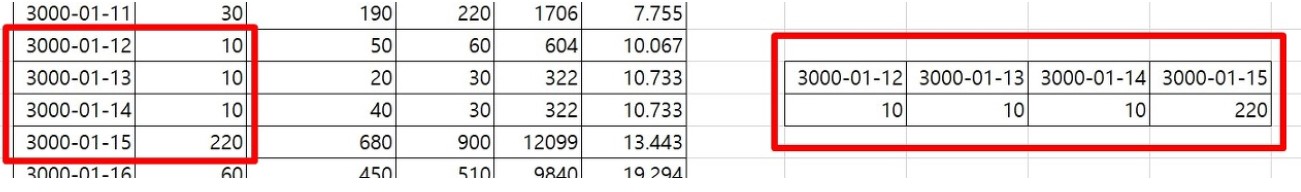 먼저 왼쪽에 있는 날짜를 행/열 바꿈으로 복사해서 붙여넣기 했더니