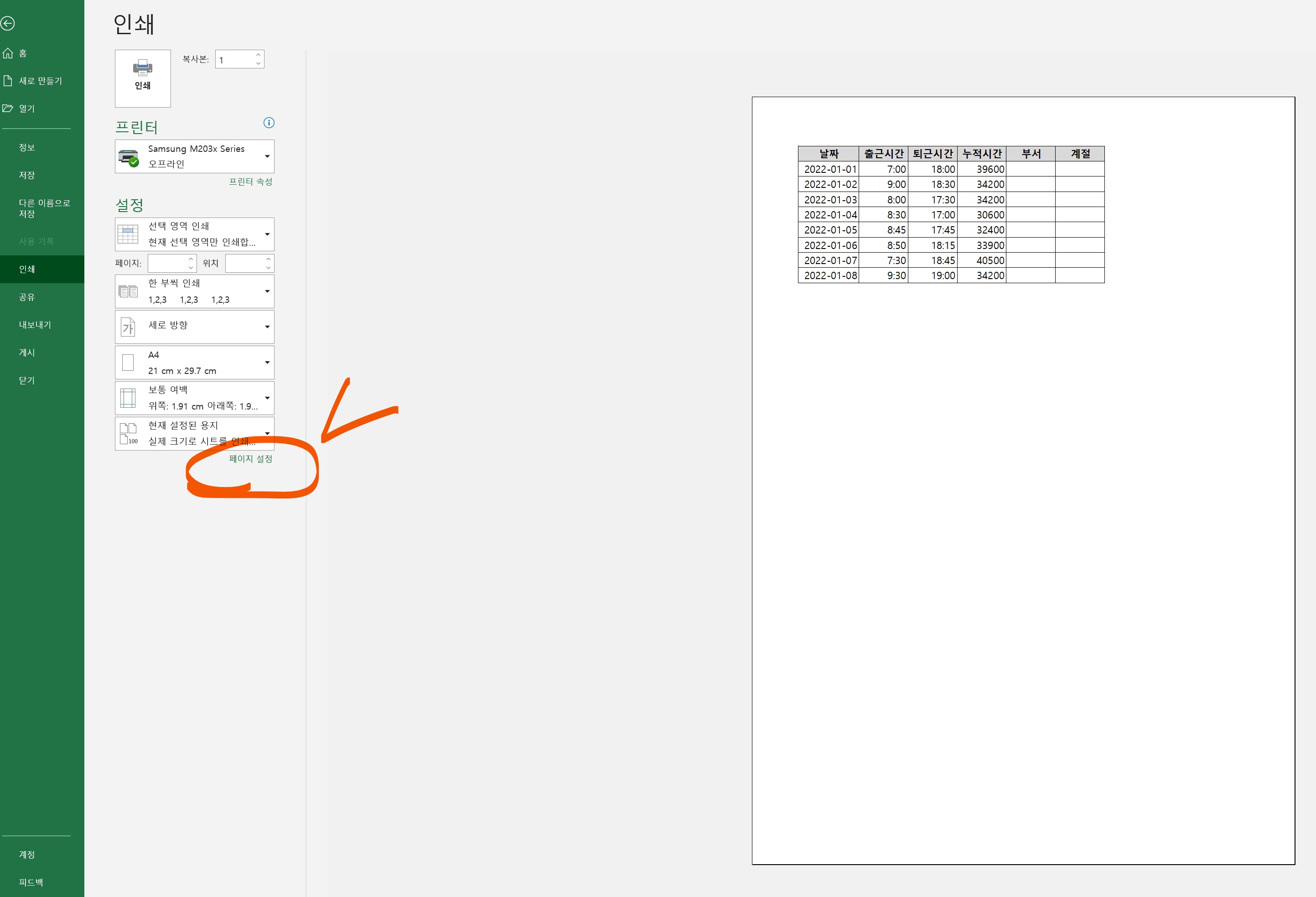 [페이지 설정] 클릭