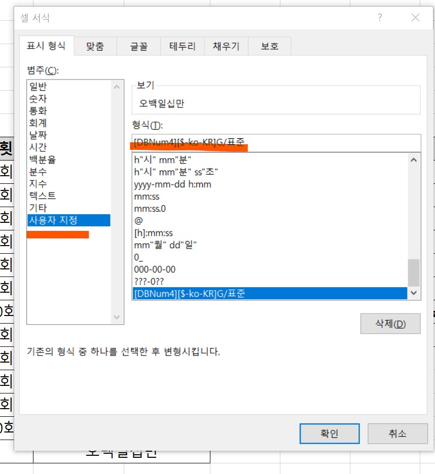 [형식]에서 숫자(한자)로 바꾸어 주면 된다.