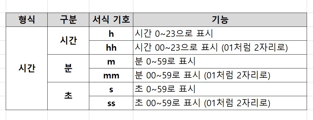 시간 서식 기호 한눈에 총정리