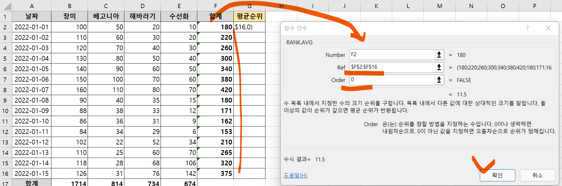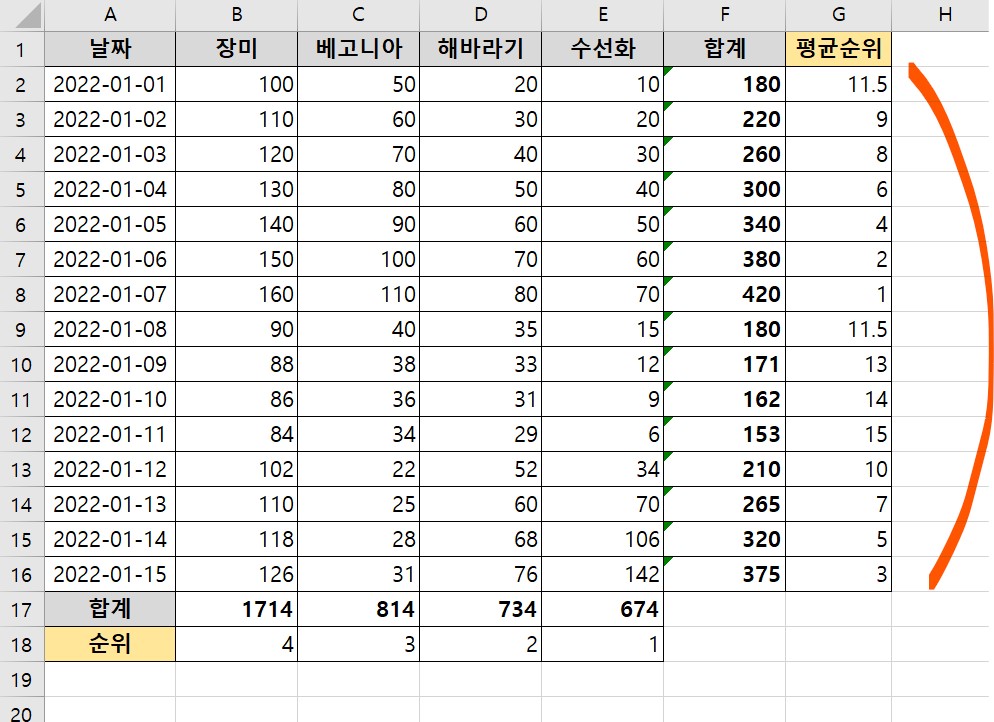 RANK.AVG 함수로 합계의 평균 순위 구하기