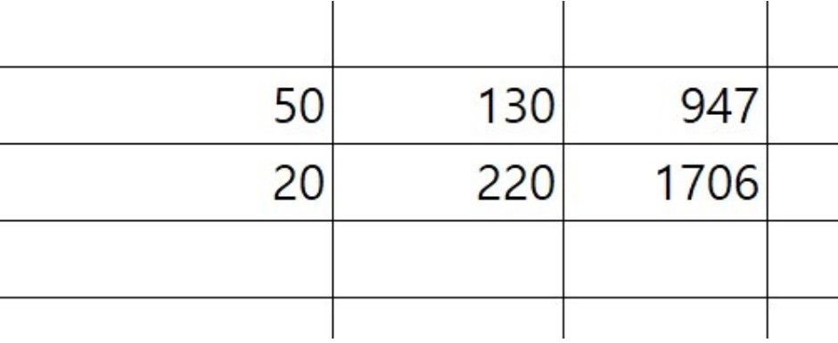 130과 220은 +90차이라서, 점점 +90씩 추가되면서 셀이 채워졌다.