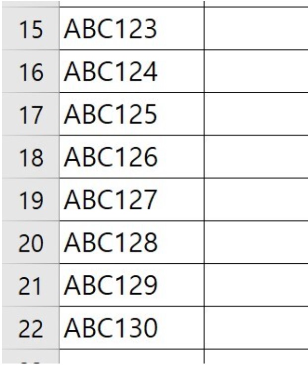 ABC123을 아래방향으로 채워넣으니, ABC124, ABC125로 점점 1씩 증가하면서 채워진 것을 볼 수 있다.