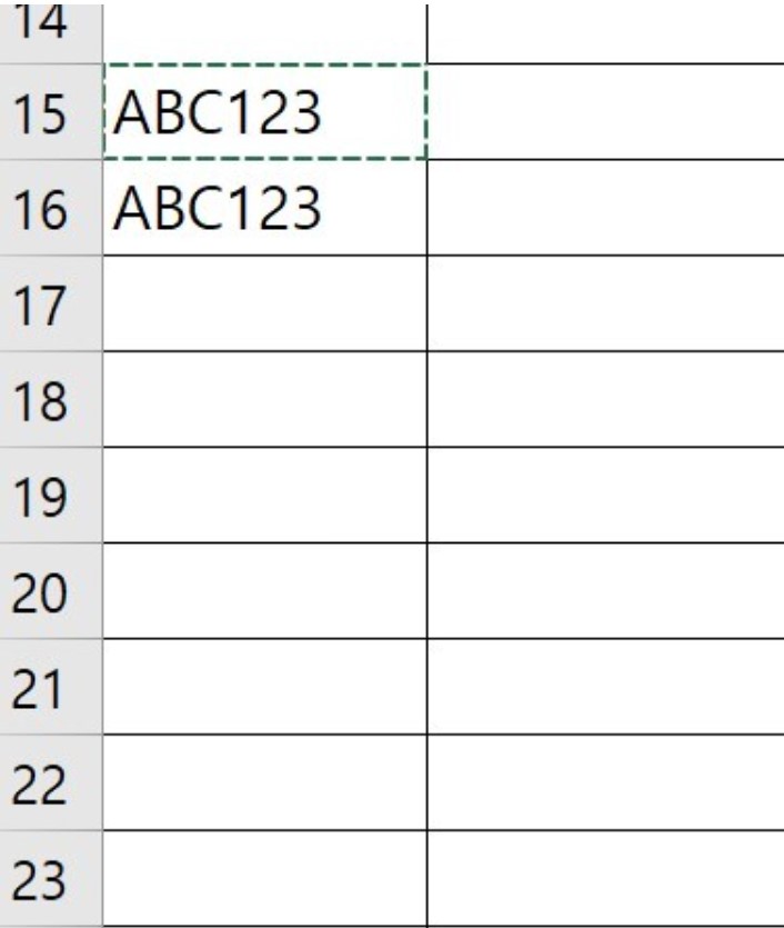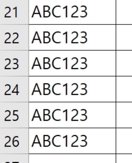 5. 동일한 ABC123이 아래방향으로 채워넣어졌다.
