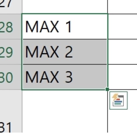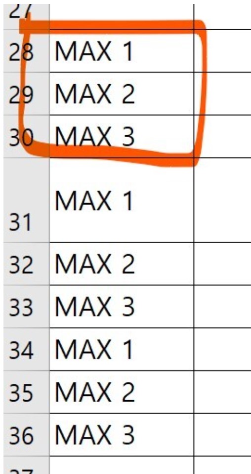 채워넣기를 하니, 아래쪽으로 동일하게 MAX1~3이 반복되어 입력되었다.