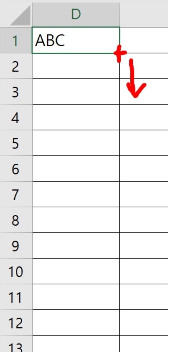 4. 오른쪽 아랫부분에 마우스를 갖다대고 마우스 커서가 +로 바뀌면 아래방향으로 드래그하여 채워넣는다.