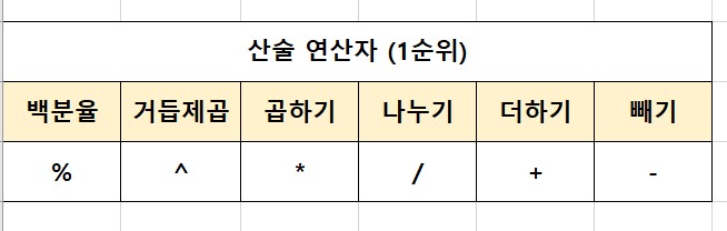 엑셀 연산자 우선순위 수식 종류 산술 문자 비교 괄호 이상 이하 미만 초과