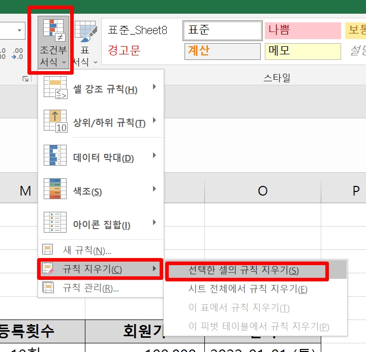 조건부 서식 삭제 규칙지우기