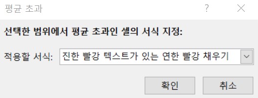 즉, 평균초과된 항목은 빨강색 셀로 표시된다는 의미.