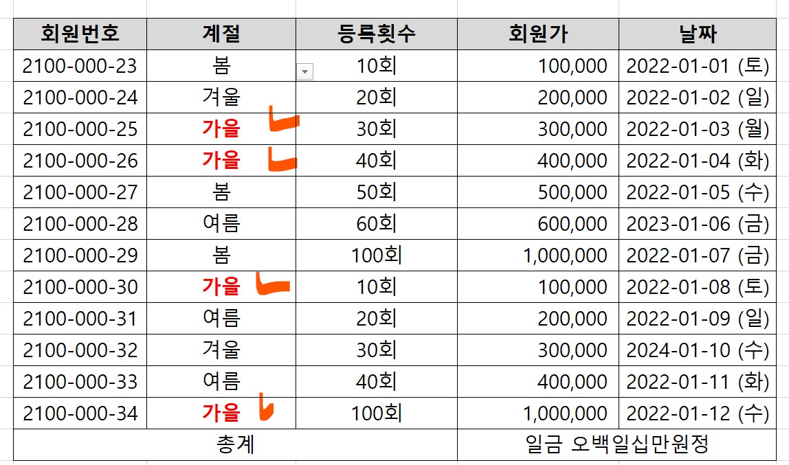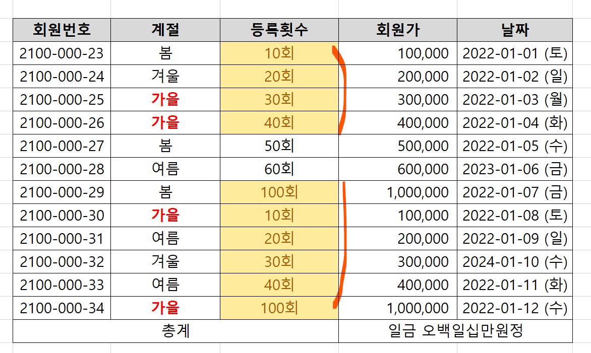 동일한 코드나 회원번호 등이 겹쳐셔 나타나, 혹여나 동일한 내용을 중복으로 입력했다면 문서를 정리하는데 도움을 준다.