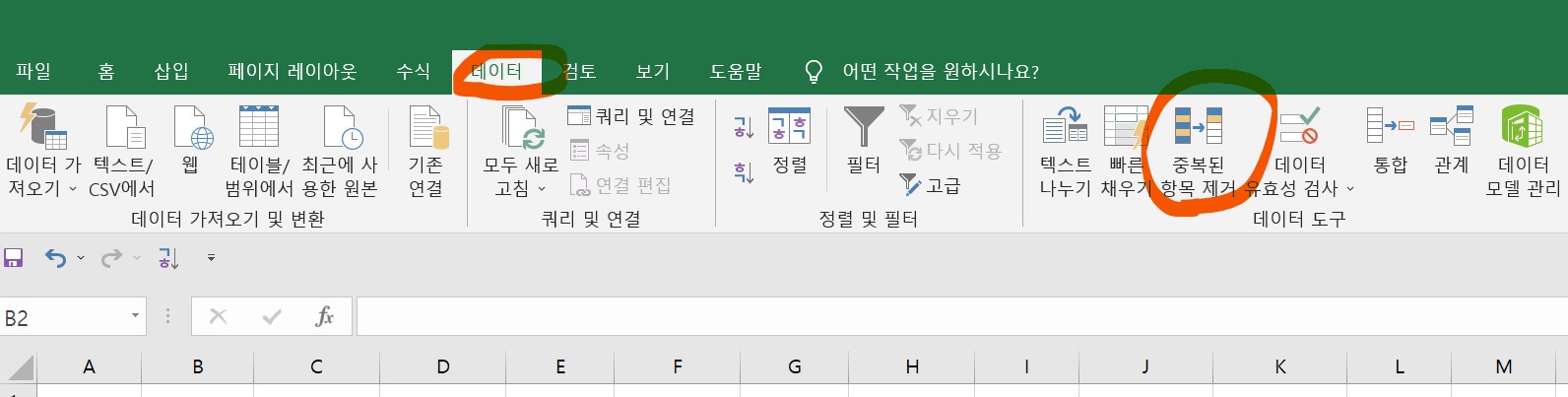 엑셀 중복 데이터 지우는 방법