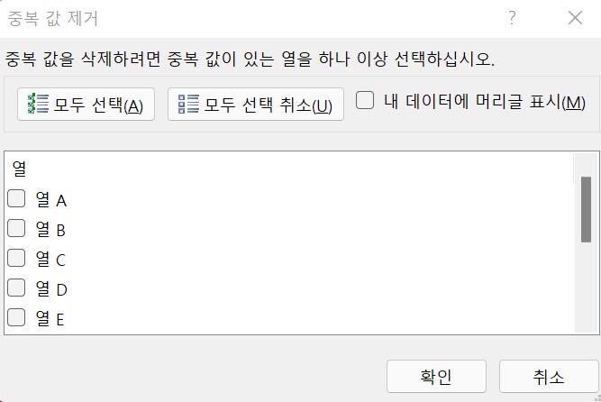 B열에만 체크를 해주고 [확인]을 눌러준다.