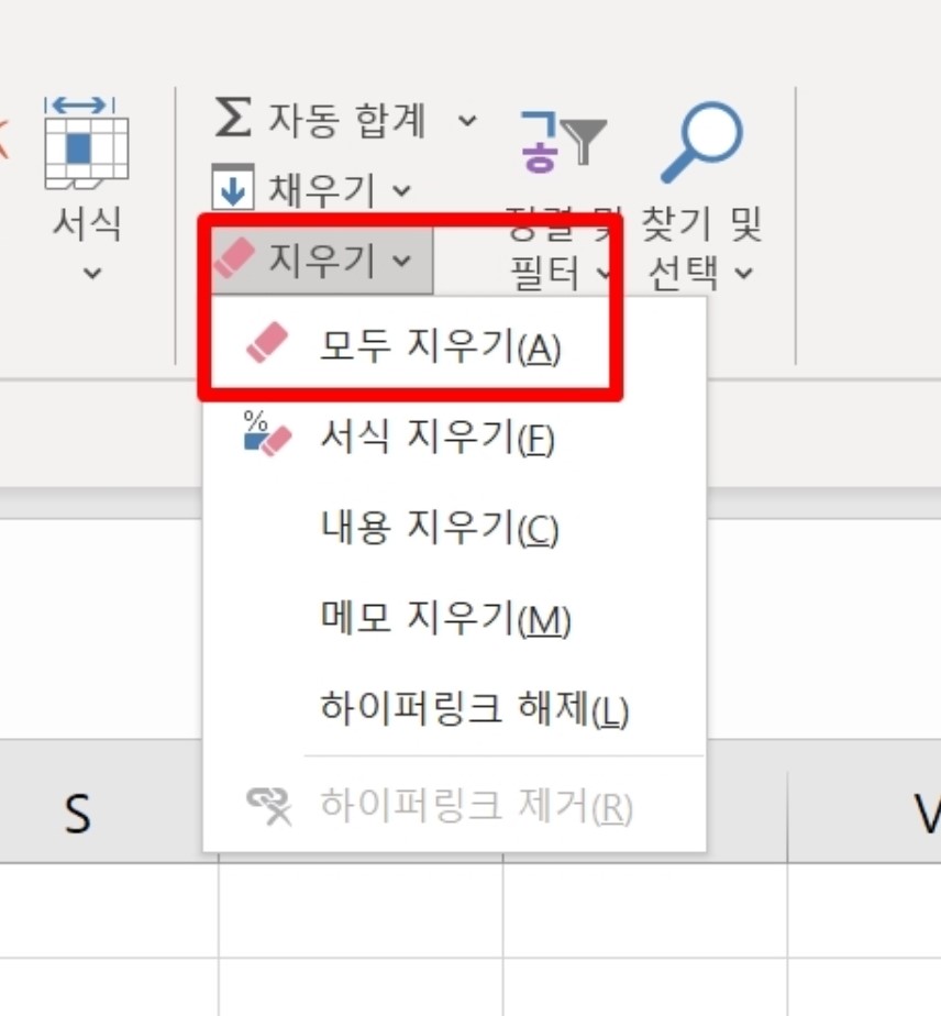 데이터 지우기 방법3. 지우기 아이콘 이용 (서식까지 100%지우기)