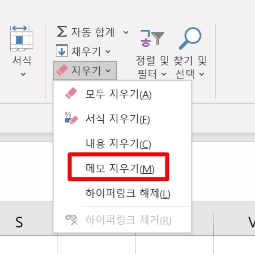 이미 메모가 삽입된 셀이어야 지우기가 적용가능하다.
