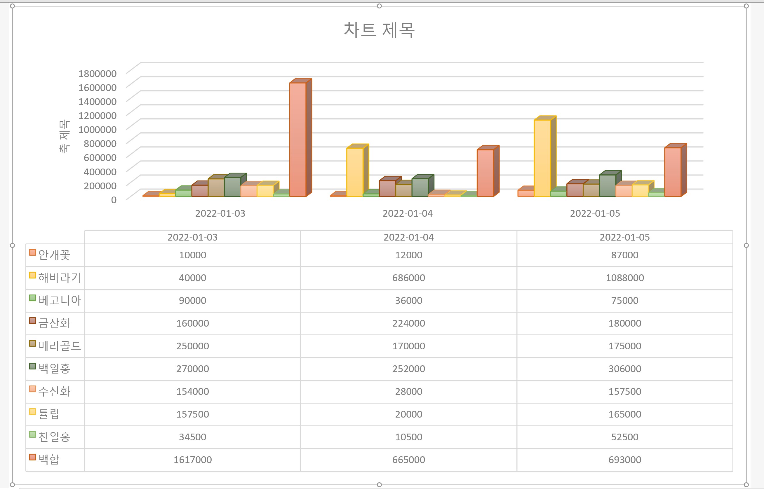 그리고 차트의 맨 마지막 부분을 보면, 표 부분에 장미 데이터가 적혀있는데 이것도 결과값에서는 사라질 예정이다.