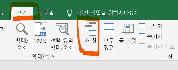 1. 작업중인 시트 2개를 새 창에 띄우기 위해 새창을 적용하고