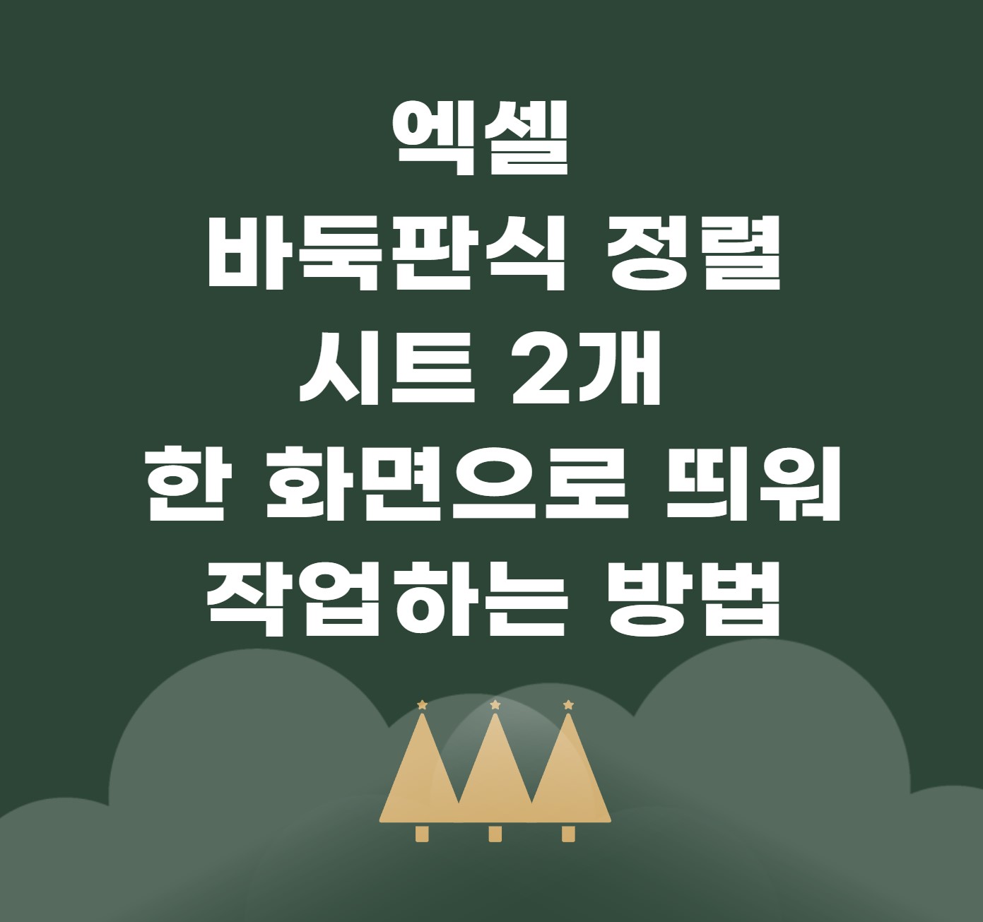 엑셀 창 두개 바둑판식 정렬로 시트 2개 새창 띄워서 한 화면으로 작업하는 방법 단축키