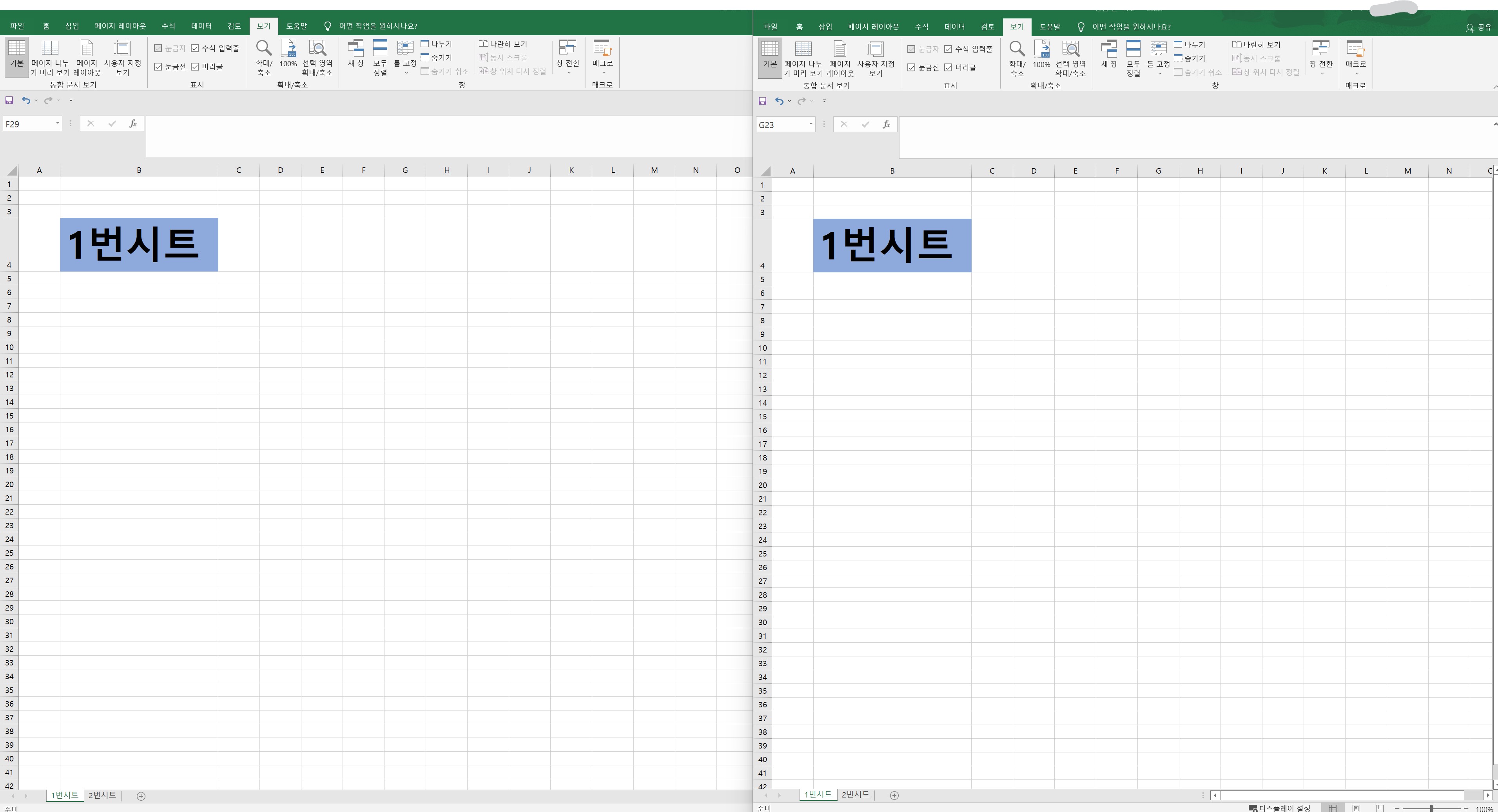 한 문서에서 2개의 시트 한번에 띄우는 방법