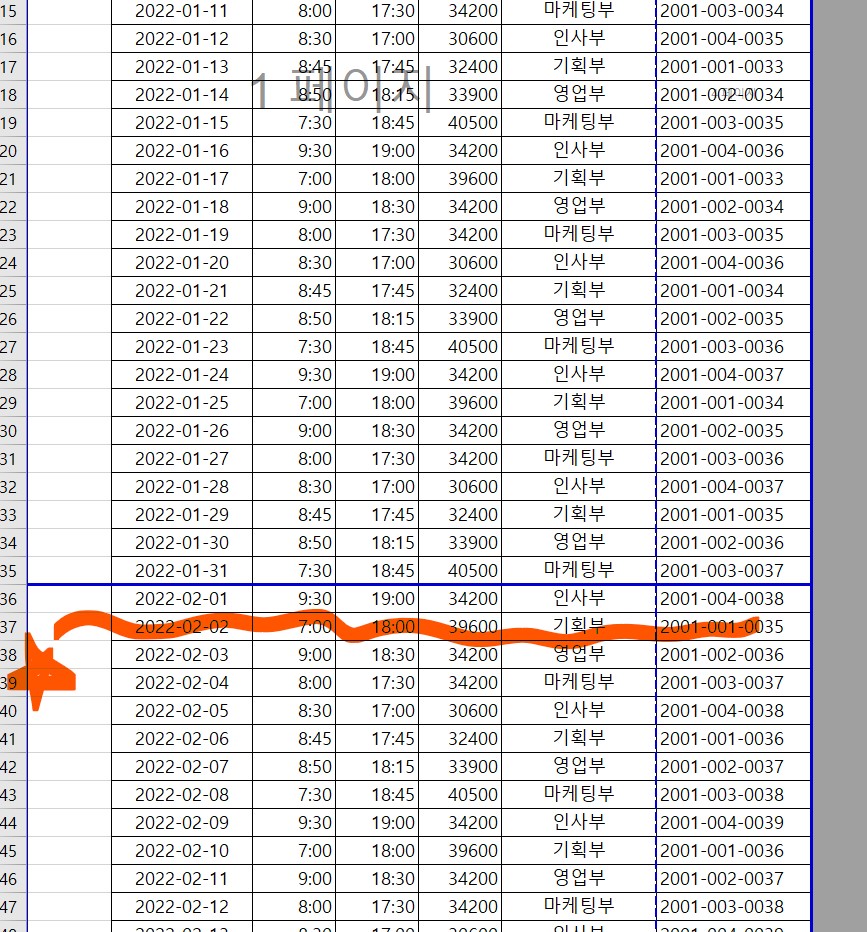 앞선 포스팅에서 자동으로 1페이지에 맞추는 방법을 알아보았지만, 더 정교하게 1월과 2월 구분과 같이 연속된 데이터를 구분해야할 때는 직접 페이지를 나누는 것도 필요하다.
