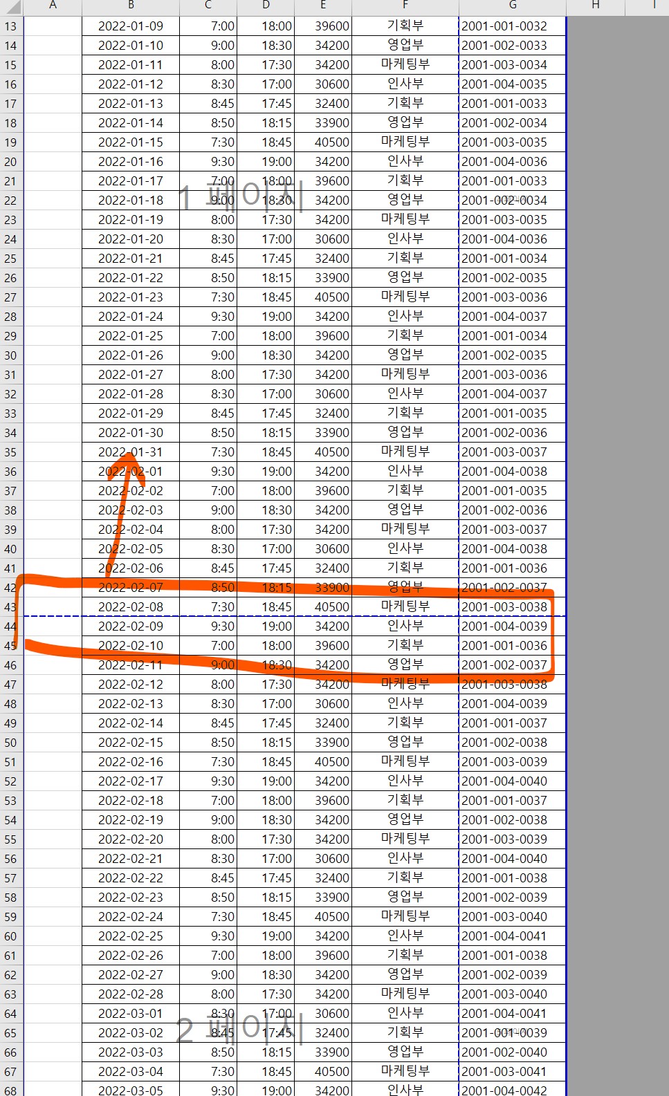 날짜를 보면, 2022-02-08과 2022-02-09 사이에서 페이지를 나누기 때문에, 2월이 끊어져서 프린트된다.
