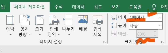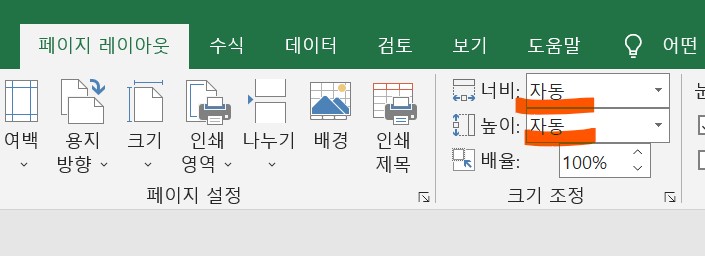 1. [페이지 레이아웃] -> [크기조정]을 체크한다.
