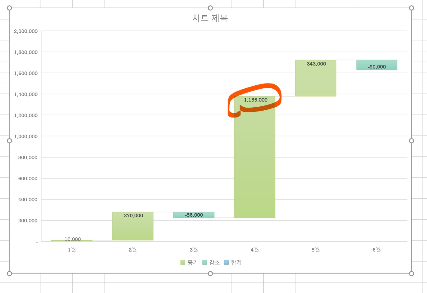 증감이 같이 있을 때 만들면 좋은 그래프이기 때문에, 눈에 딱 띈다.