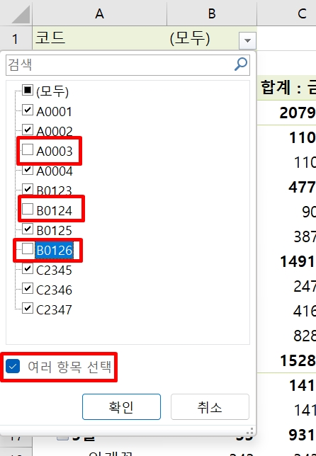 엑셀 피벗테이블 그룹 지정 해제 필터 적용