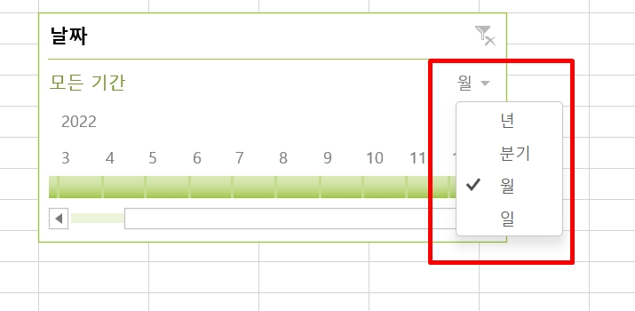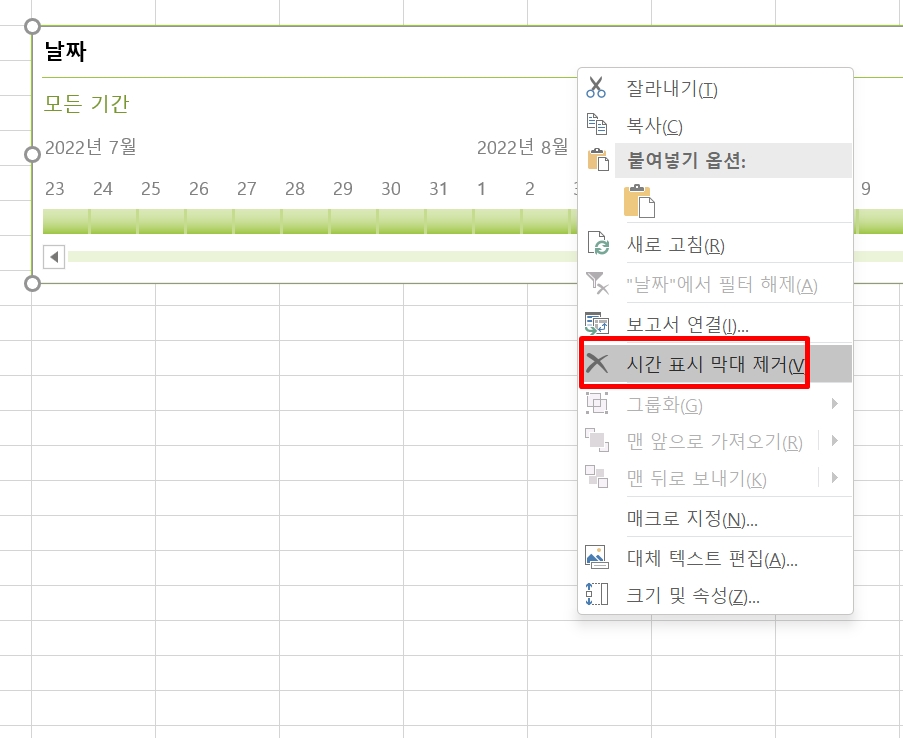 엑셀 피벗테이블 시간 표시 막대 삽입하고 제거하는 방법