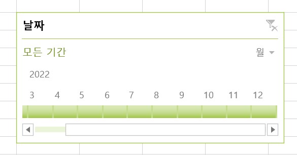 앞서 만든 피벗테이블을 적용한 데이터다. 이 데이터를 기반으로 시간 표시 막대를 삽입해보려고 한다.