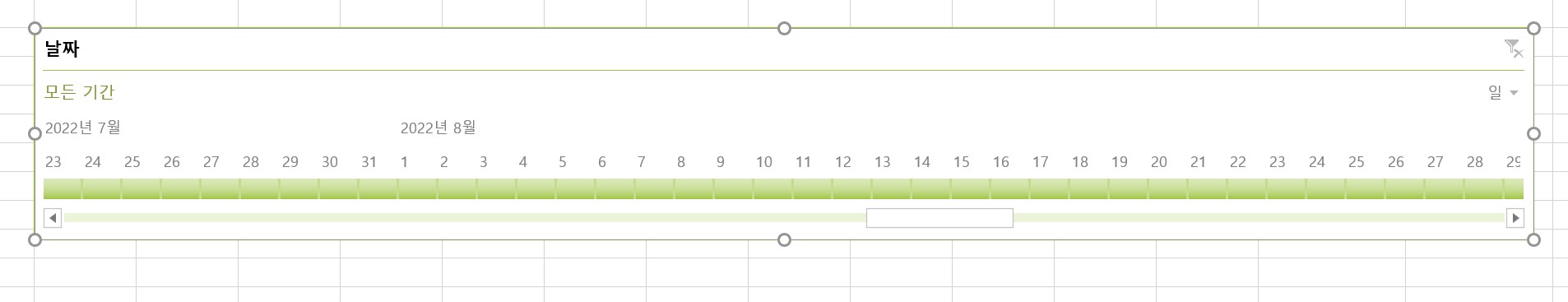 3. [일]기반으로 시간 표시 막대가 설정되었다. [일]은 일자가 많기 때문에 더 길고 큰 시간 표시 상자로 표시된 것을 확인할 수 있다.