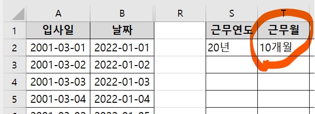 즉, 20년에 이미 개월수가 들어가 있어서 20년 10개월 개월동안 일하고 있다는 뜻이 되고,