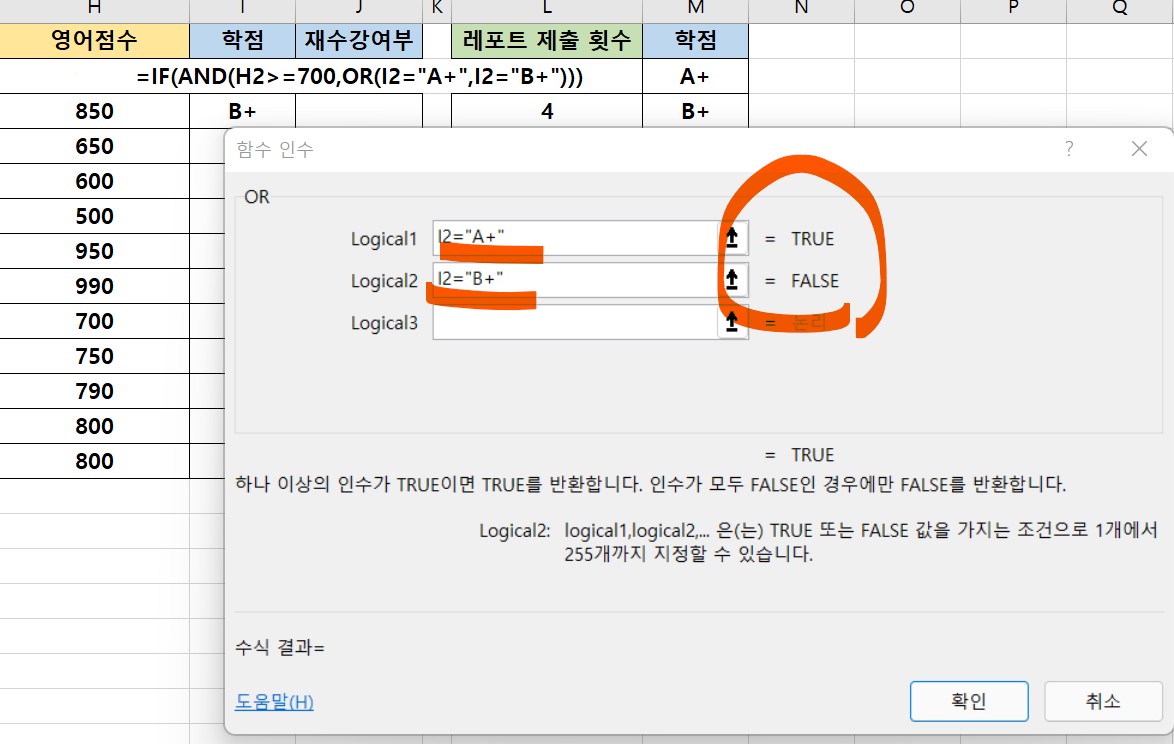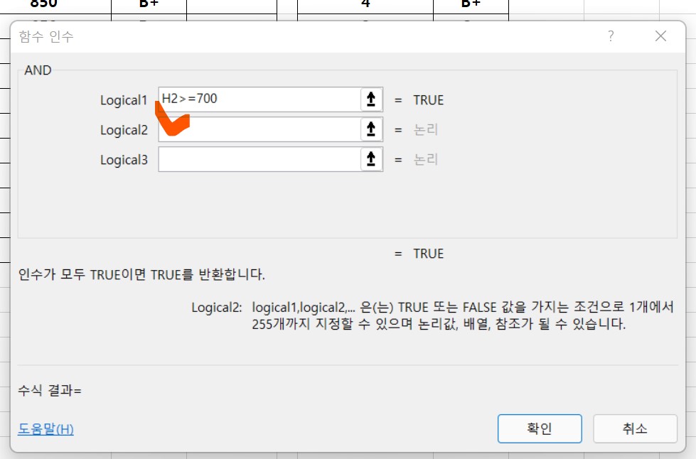 Logical1과 Logical2에 각각 조건을 입력해준다.