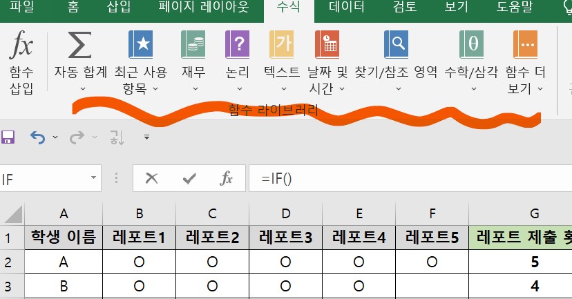 수식줄에서 IF를 클릭하자.