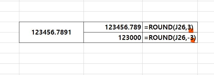 =ROUND(123456.7891,-3)을 입력하면 정수 3째자리수에서 반올림하여 표시하라는 의미라서