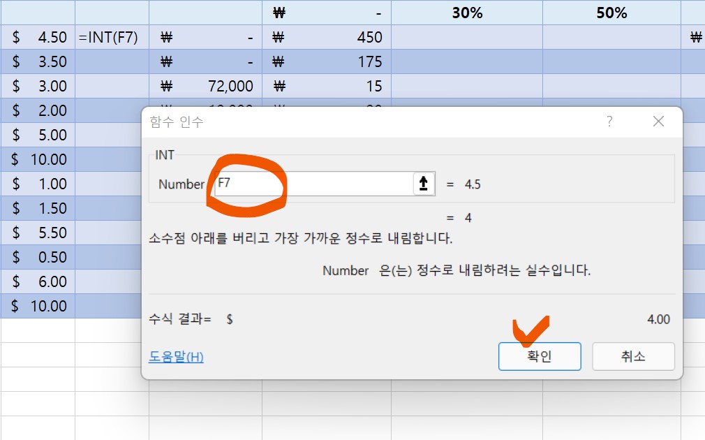 2. INT함수로 소수점을 없애고 정수로 변환되는 과정을 살펴보겠다.