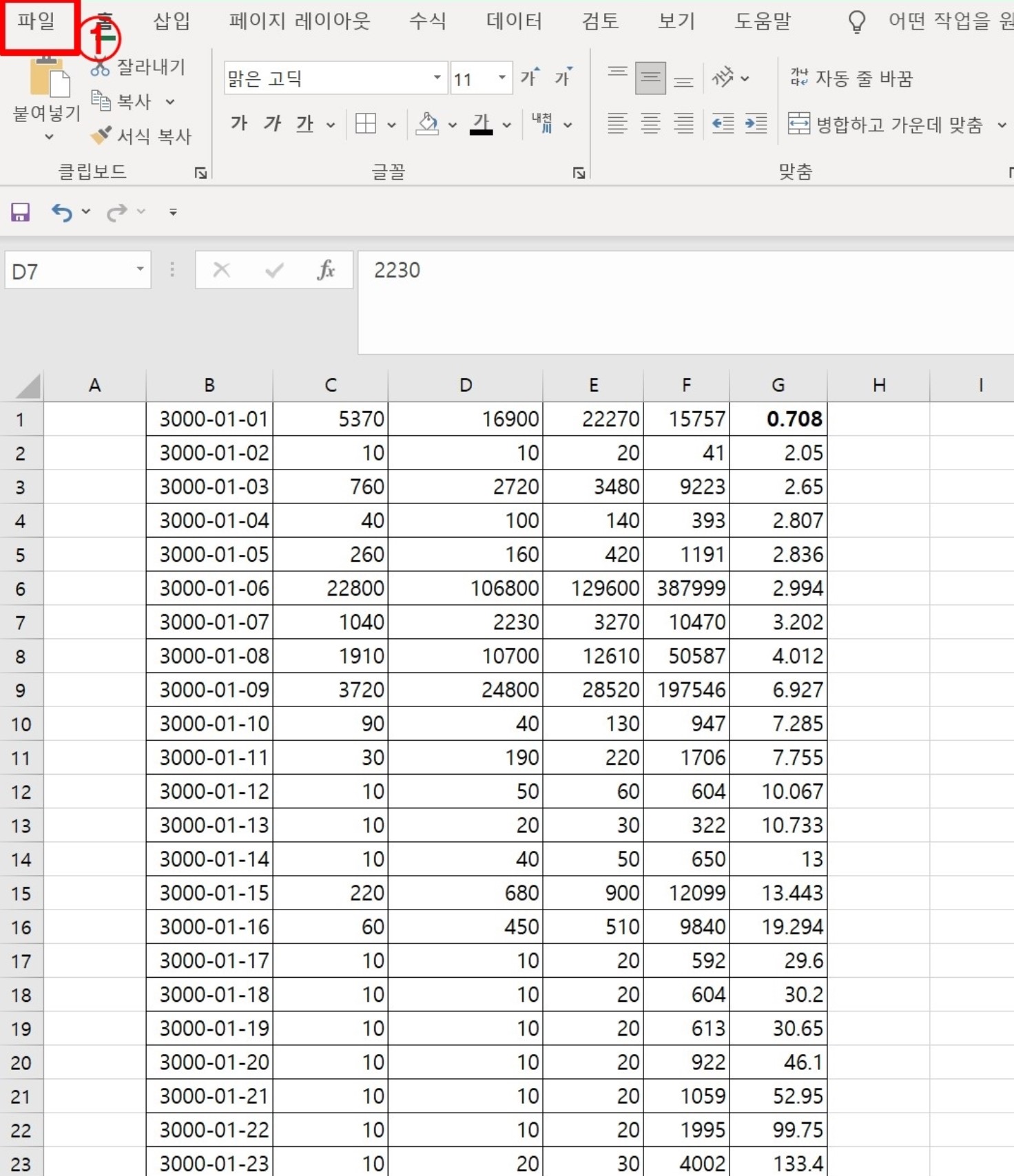 1. pdf로 변환할 파일을 연 후, [파일]을 클릭해준다.