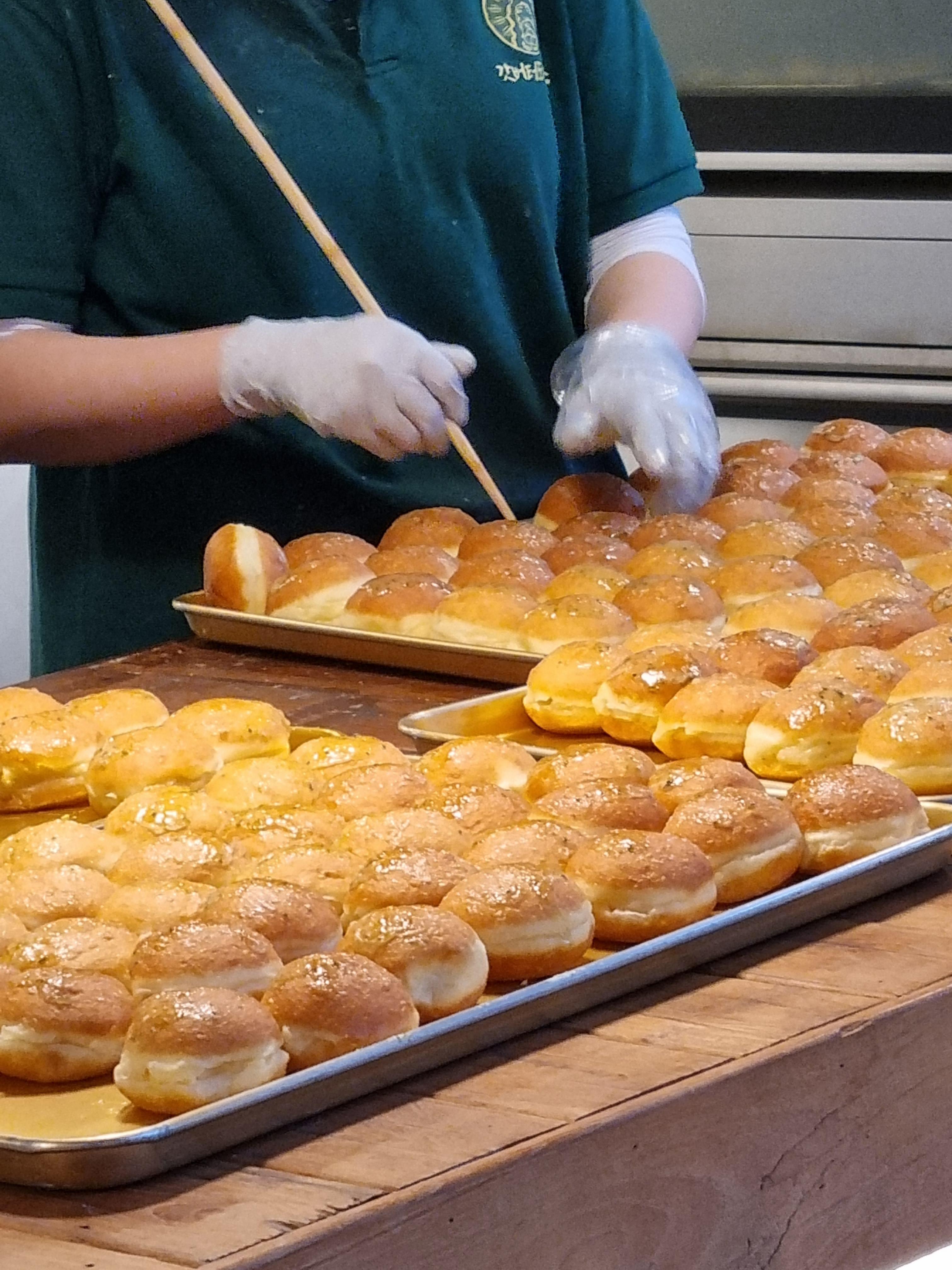 기다리다보면 분업이 아주 잘 되어 있는걸 볼 수 있다. 이미 구워진 도나스에 한명은 구멍을 뚫고, 바로 옆의 한명은 버터크림을 넣고, 다른 한명은 계속 상자에 포장을 하고, 그 옆에서 계산을 하는 시스템이다. 아무래도 안쪽에서는 도나스를 열심히 만들고 굽고 있겠지.