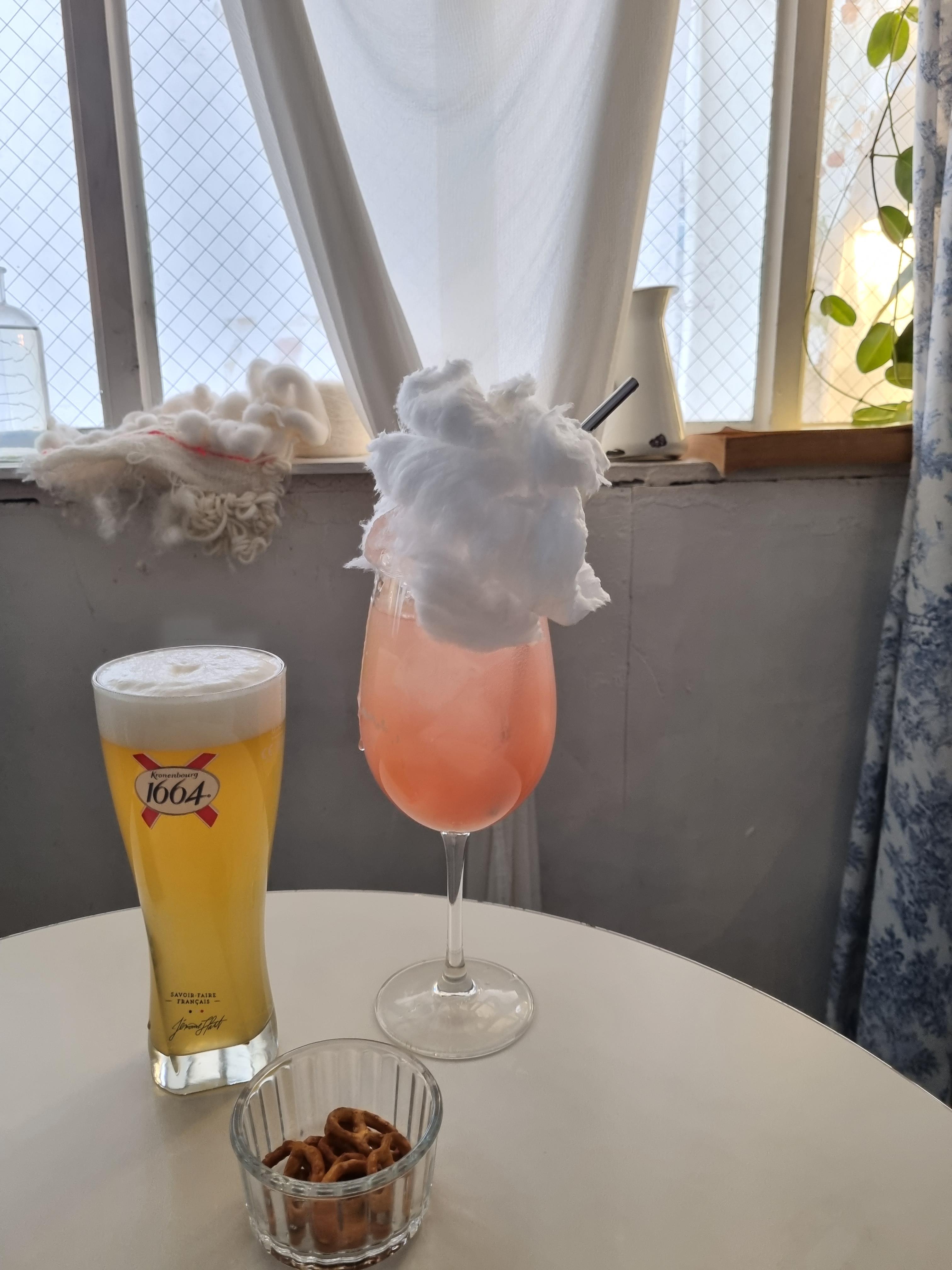 무알콜음료 중 핑크 레모네이드는 솜사탕을 올려준다. 이날 시켜보았으니 아래에서 사진을 확인할 것.
