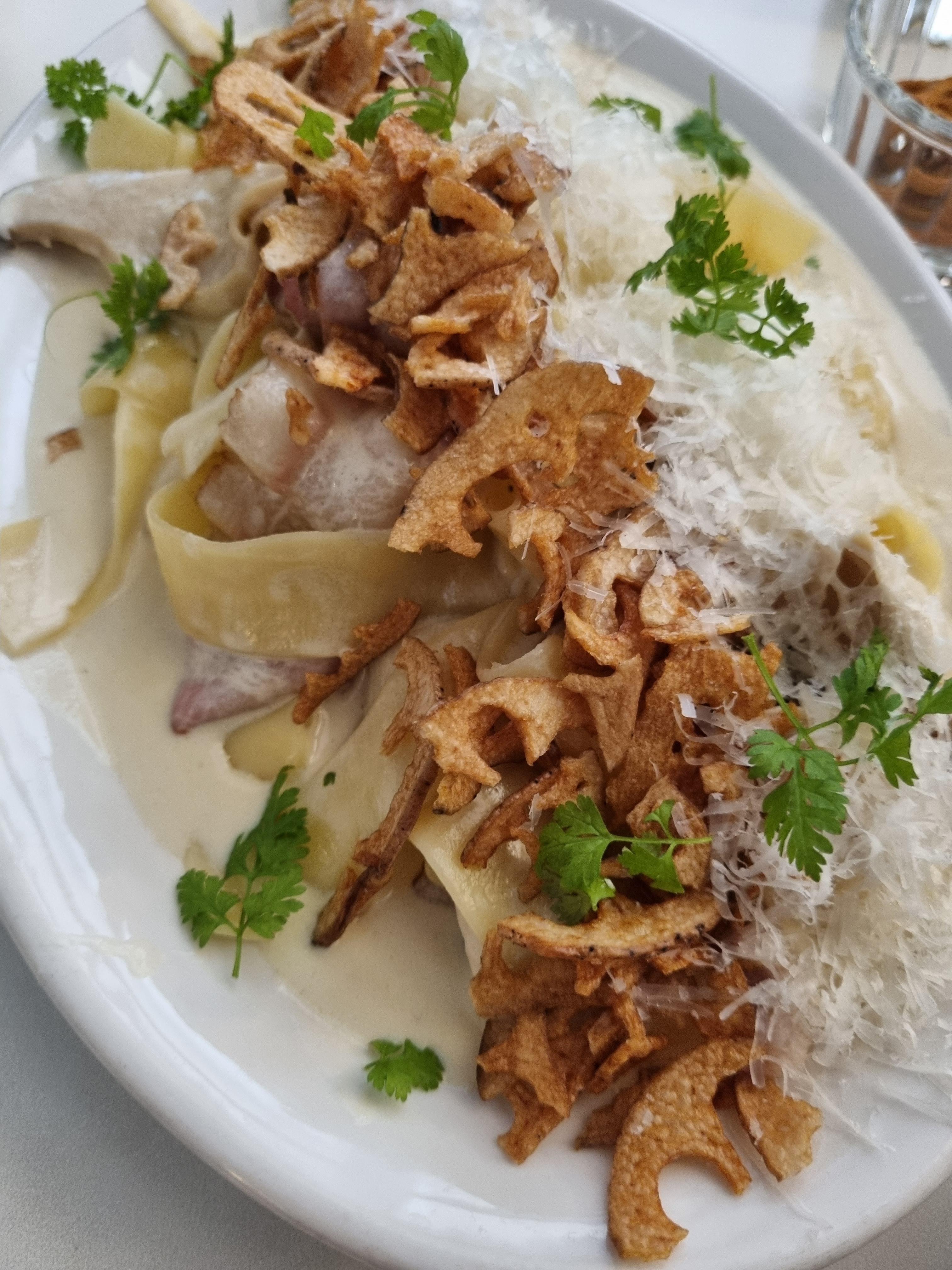 크림소스가 많이 느끼하지 않고, 아주 넓적한 면의 식감이 정말 좋았다.