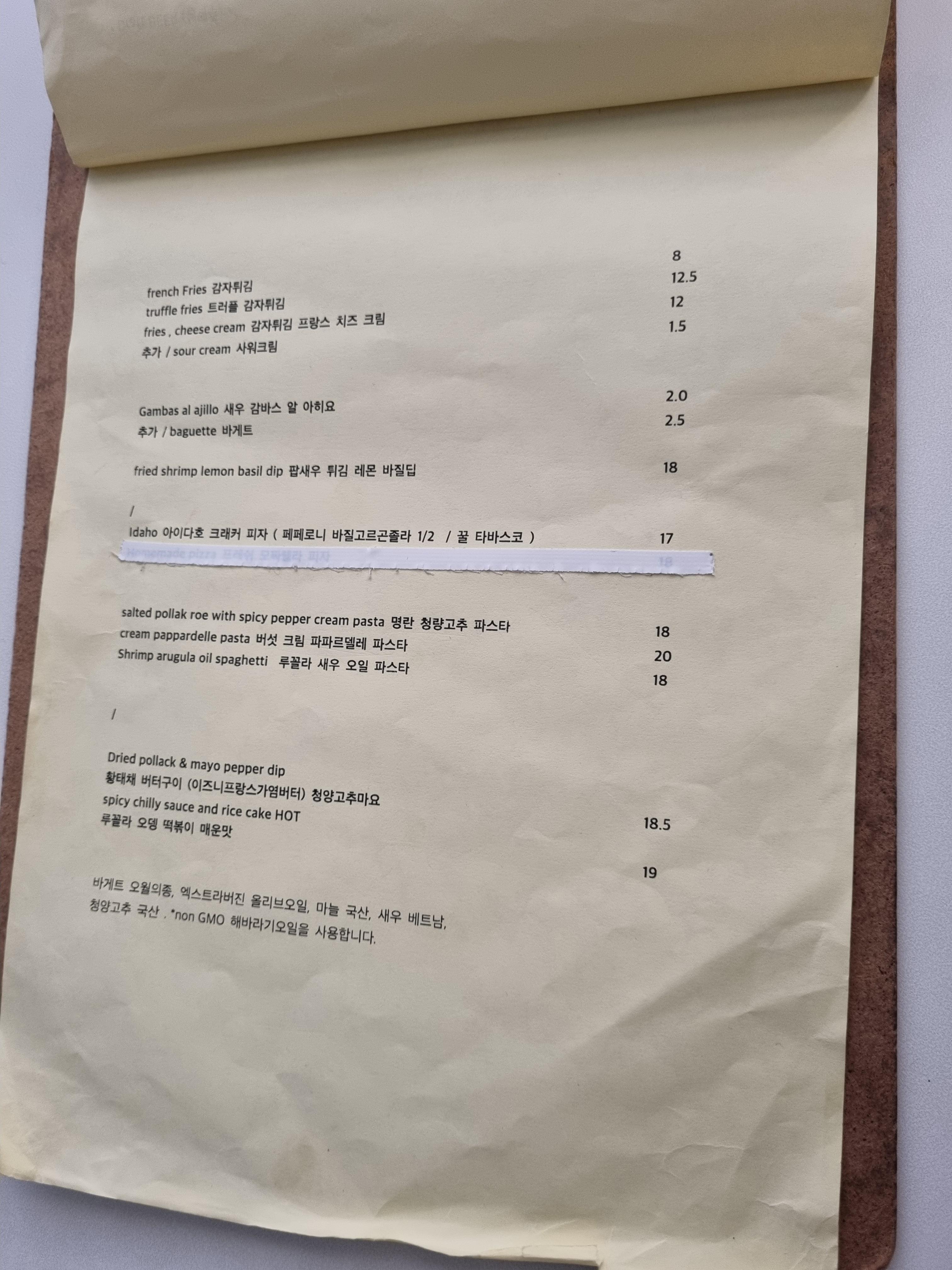 오일 파스타 좋아하시는 분들은, 명란 파스타도 많이 시켜드시는 것 같았으니 참고할것.