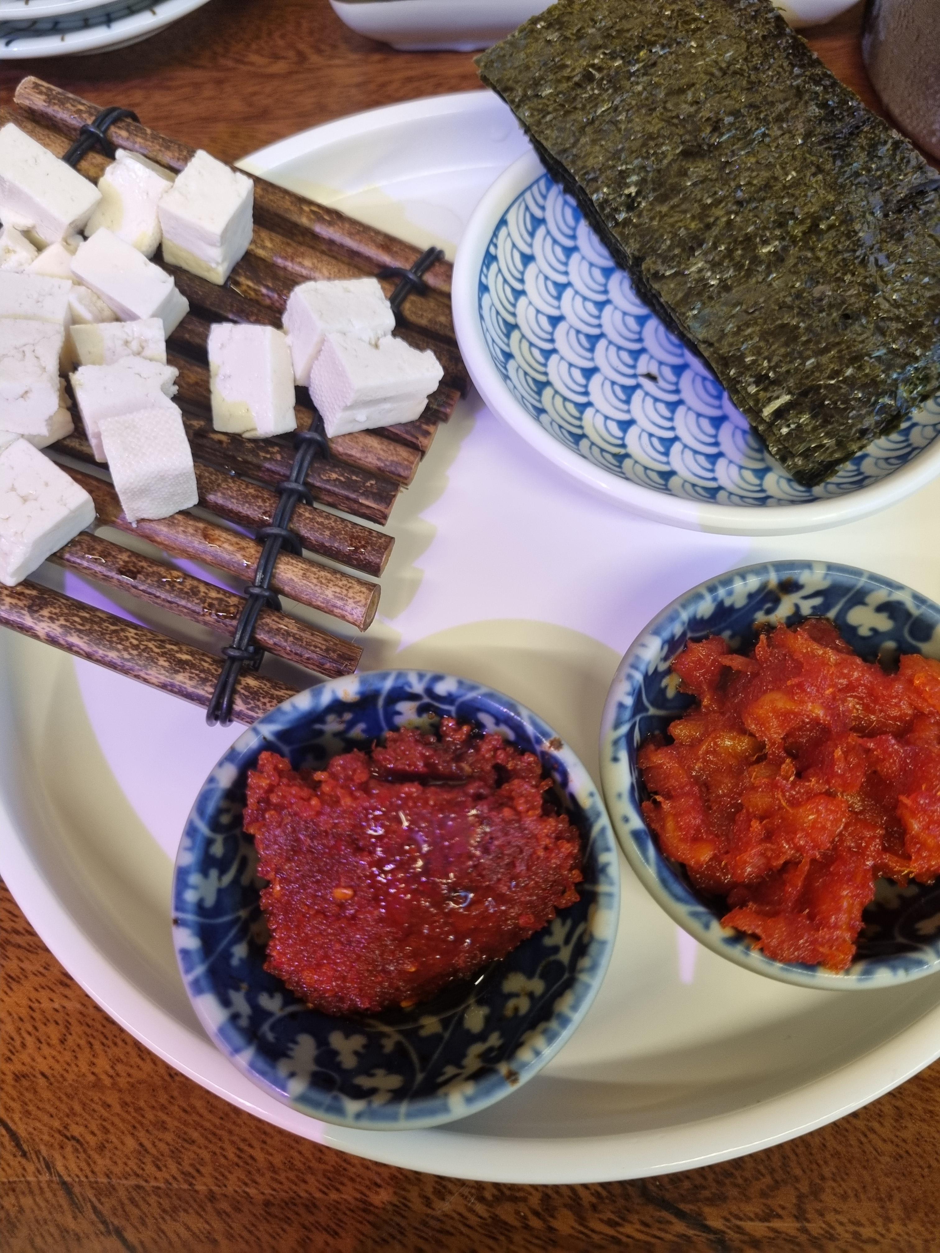 또 다른 접시는 두부와 명태초절임, 청어알, 김을 준다.