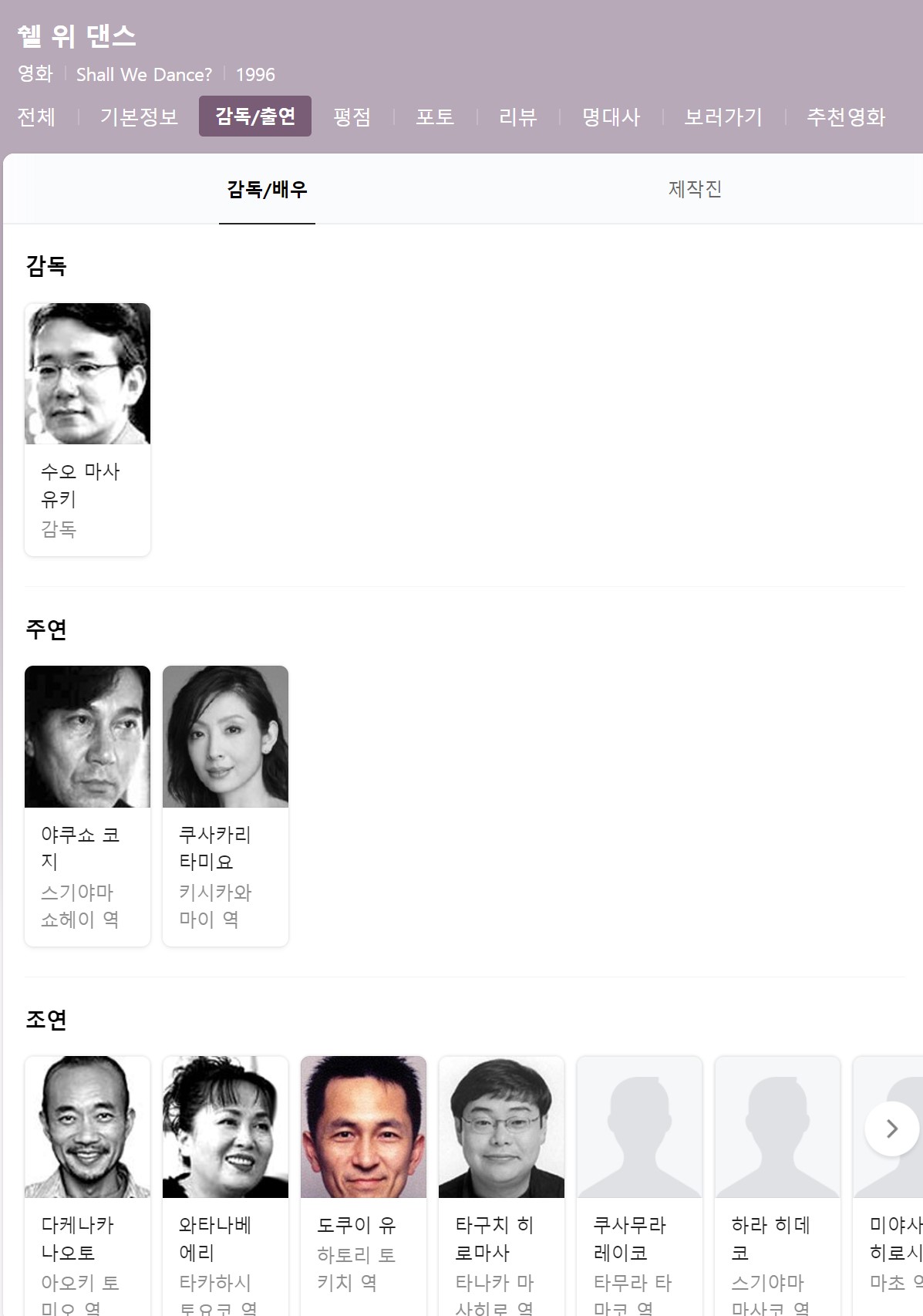 원래 발레리나지만 이 영화에 캐스팅되면서 배우로 활동하게 되었는데, 쉘위댄스 영화가 잘 되면서 아예 배우의 길로 접어들게 되었다고.