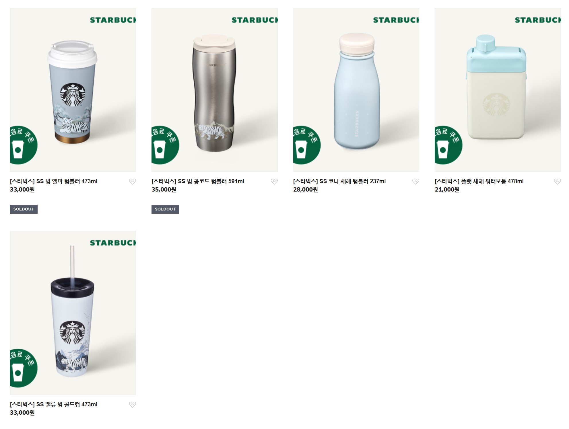 스타벅스에서는 매년 한 해를 기념하는 띠 별 상품을 내놓고 있다. 올해의 띠인 호랑이를 기념하여 관련 상품들을 내놓았다. 해당 띠에 해당되면서 스벅을 좋아하는 분들은 소장해도 좋을 듯. 기념품으로!