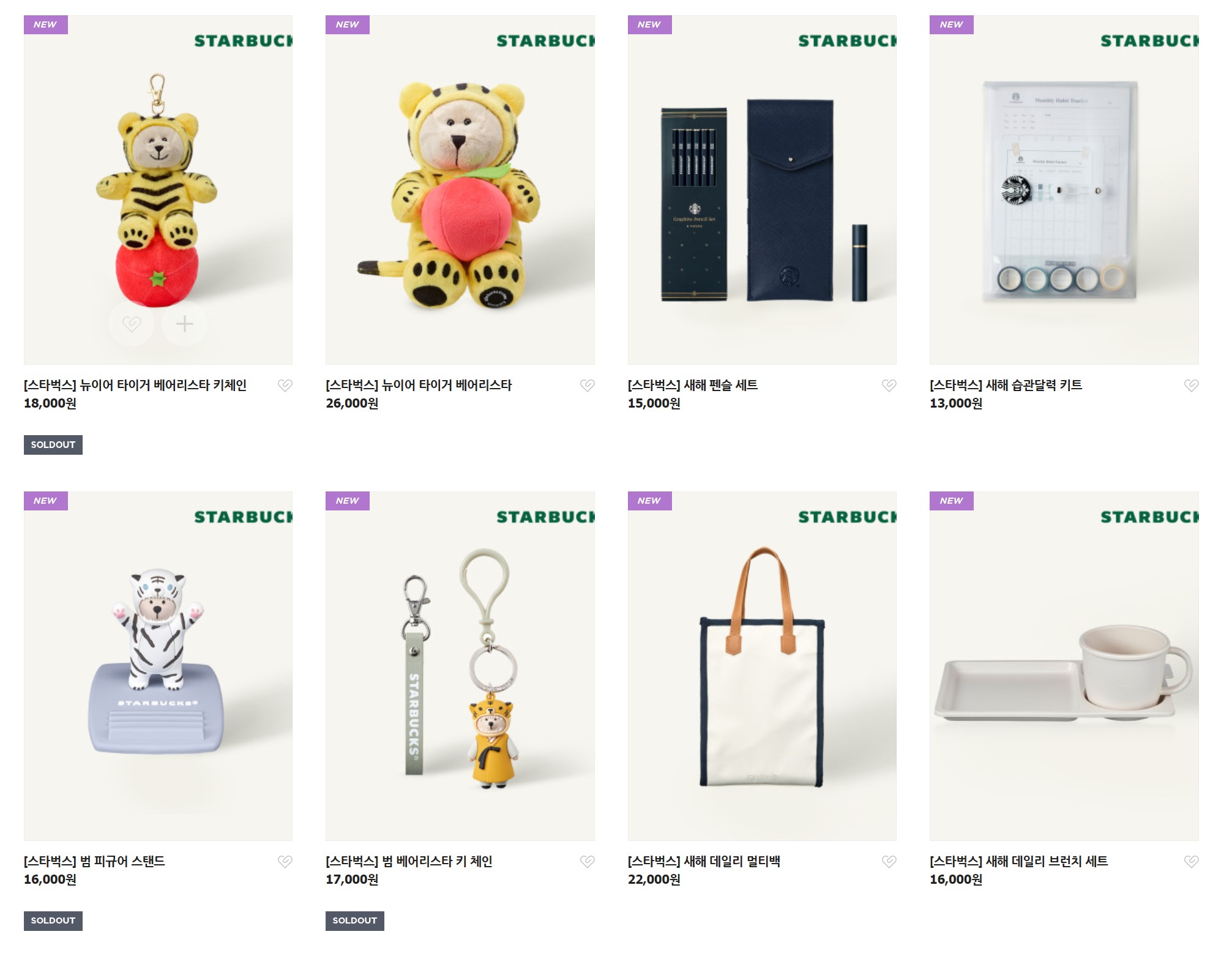 전반적인 호랑이띠 상품들을 쭉 보고, 아래에는 가격 정보와 함께 전체적인 라인업을 담았다.