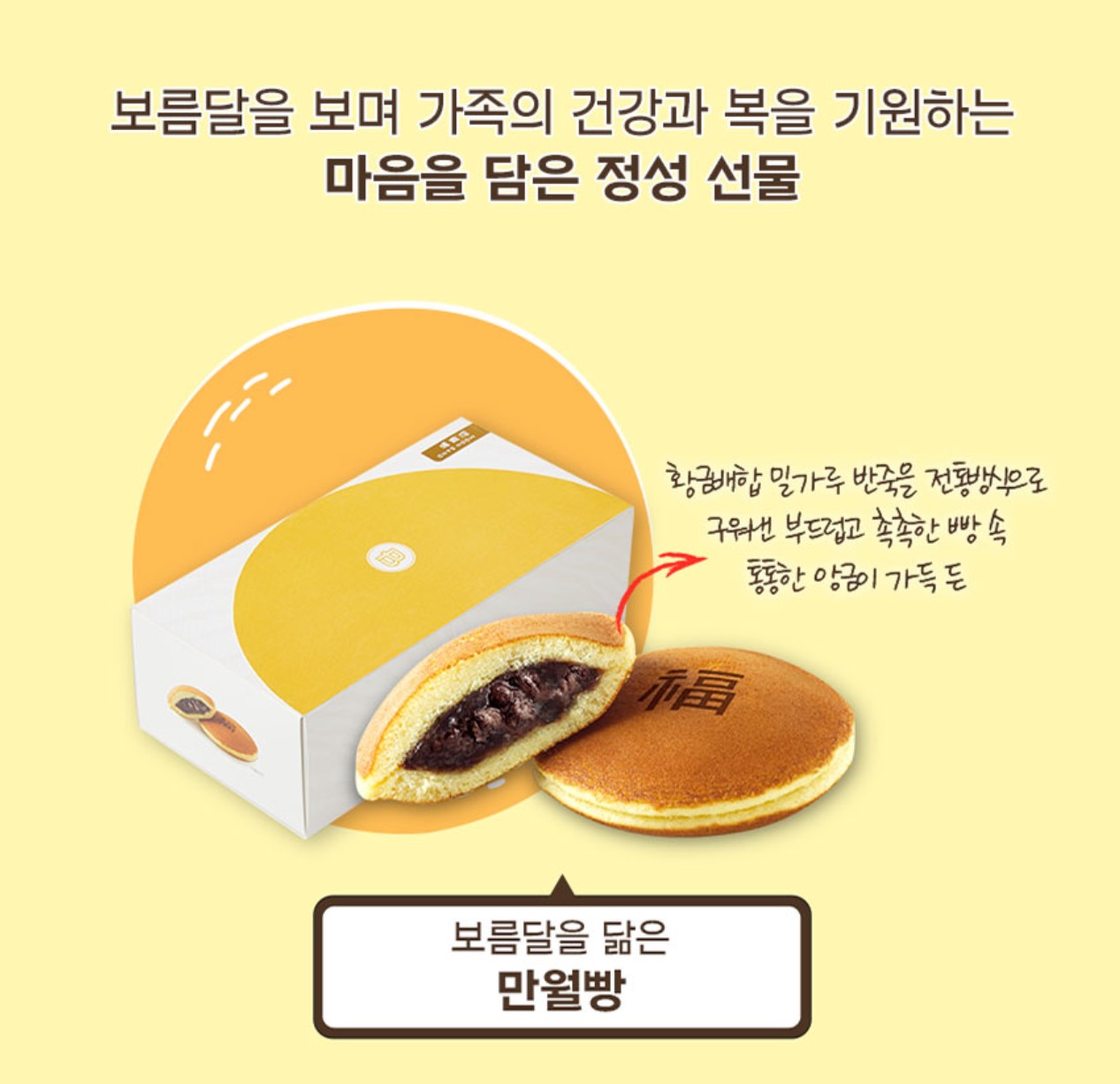 호랑이 아이템뿐만 아니라, 보름달을 닮은 만월빵도 함께있다. 선물용으로 선물하기 좋도록 박스포장 되어 있어며 안에는 앙금이 가득들어 있고 빵이 부드러워서 누구나 먹기 좋아보인다.